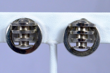 MINIMALIST STERLING SILVER GEOMETRIC EARRINGS - SCREW BACKS - TRUE 1950's VINTAGE