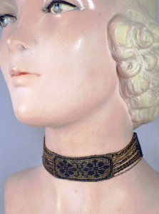 EDWARDIAN SEED BEAD CHOKER NECKLACE - BLACK, GOLD AND STEEL GRAY GEOMETRIC PATTERN - from Production of Motion Picture TITANIC - TRUE 1910's VINTAGE